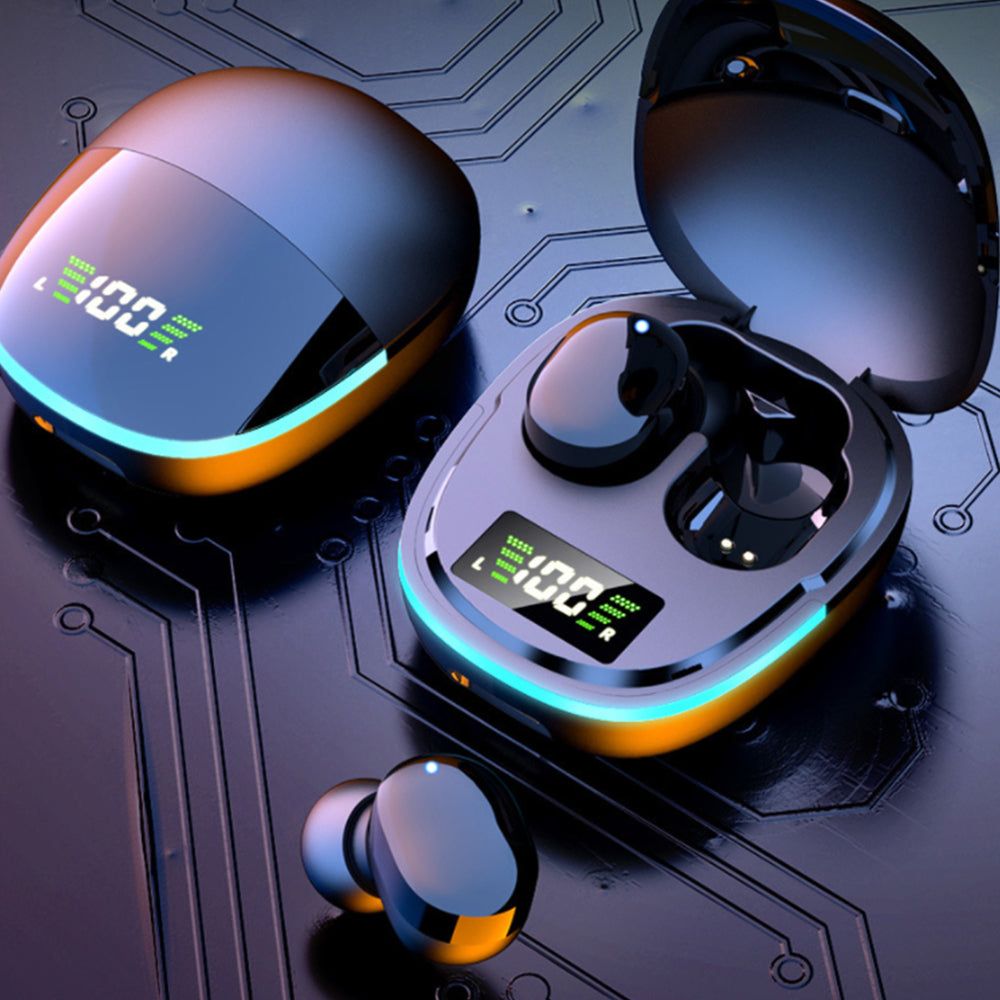 LUMADISPLAY GO brings a futuristic look to everyday listening with a cool breathing light glow and a sleek digital display charging case. The LED readout shows case power at a glance with clear left and right status so you always know what is ready to play. Tap controls keep music calls and volume within reach no digging for your phone. The compact pocket case recharges on the go and looks sharp. The ergonomic semi in ear fit stays comfortable while you move. Enjoy crisp stereo sound and a built in mic for clear calls plus super responsive low latency. The breathing light ring looks premium. Slip it in your pocket and glow on.